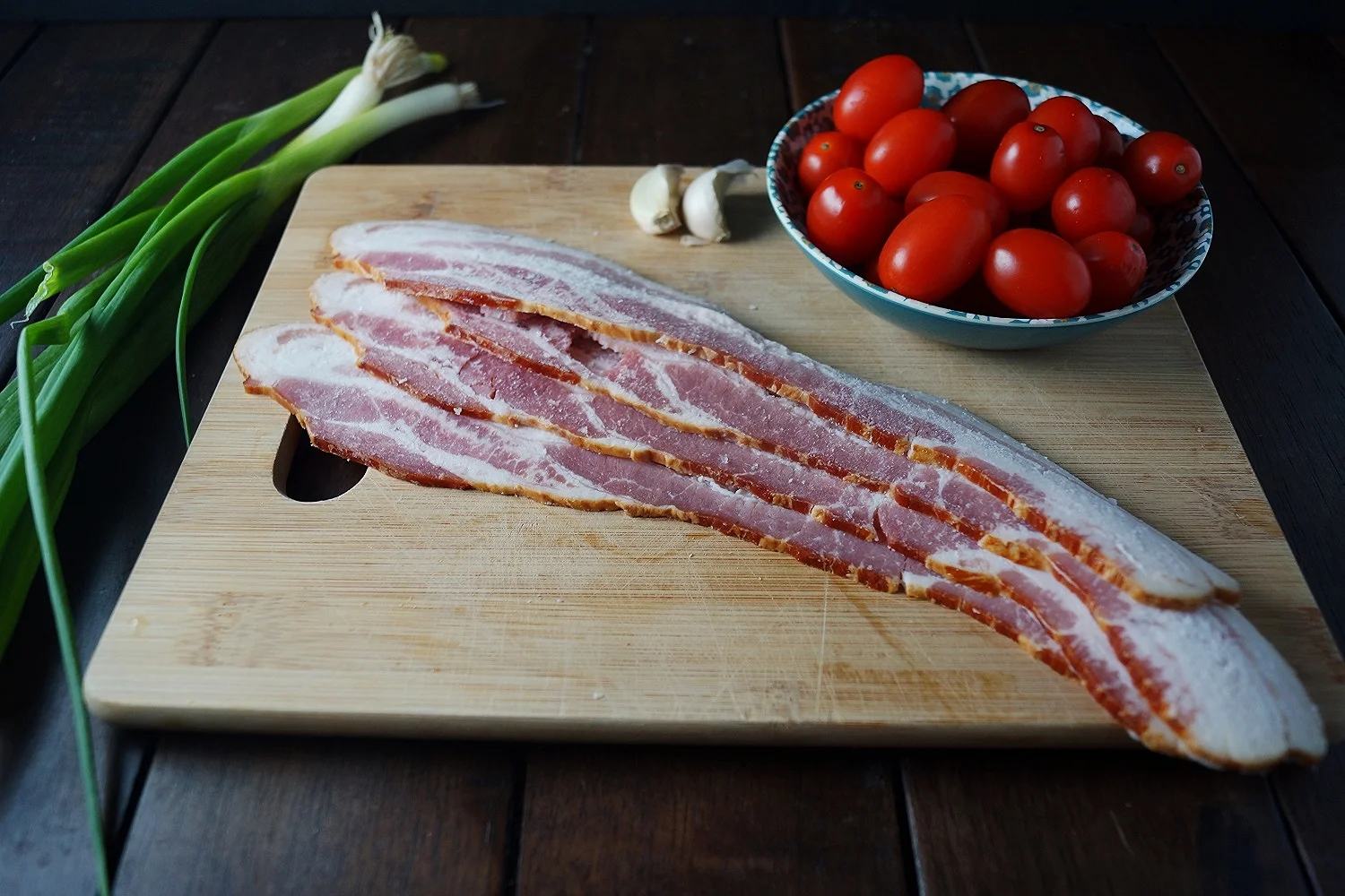 I know, I know, tomatoes are not in season yet, not even close. But I miss them! And while dreaming tomato dreams, I had this great idea to use them in a savory bread pudding I was making. And so, I broke down and bought a pint of cherry tomatoes. They’re small and sweet, and once you cook them down with bacon, garlic and balsamic vinegar, you can’t even taste that they’re not in season.