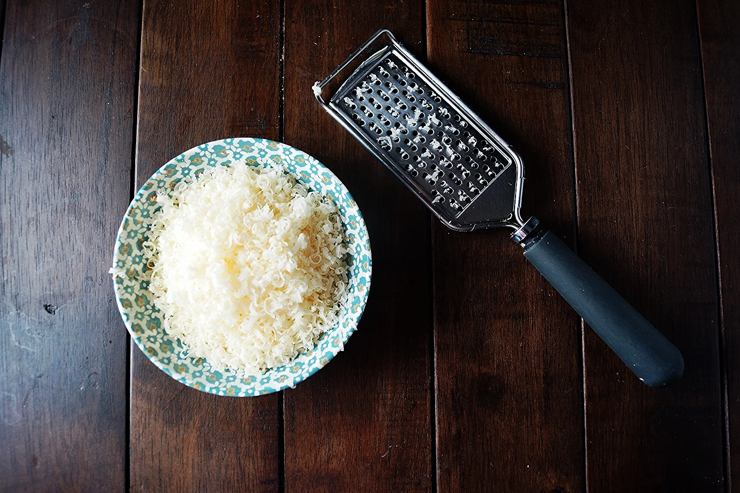 6. In a small bowl, whisk together the eggs, salt and pepper. Add to the bread mixture, along with ½ cup grated parmesan cheese, stirring well to combine.